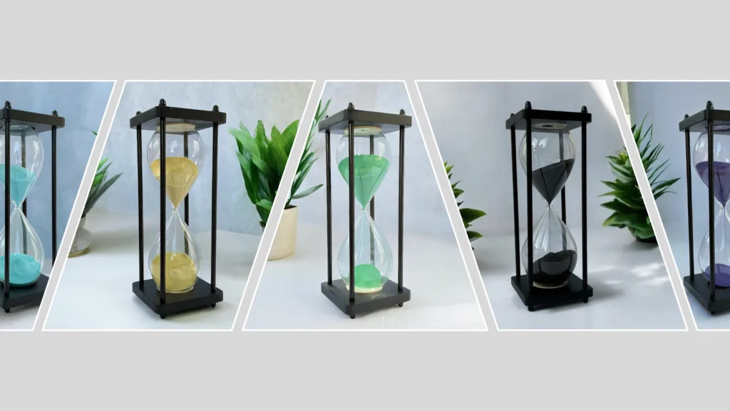 Our Sand Clocks offer a simple yet effective way to keep track of time. Perfect for work, study, or relaxation, they help you stay focused and on schedule, while adding a touch of elegance to your space.
